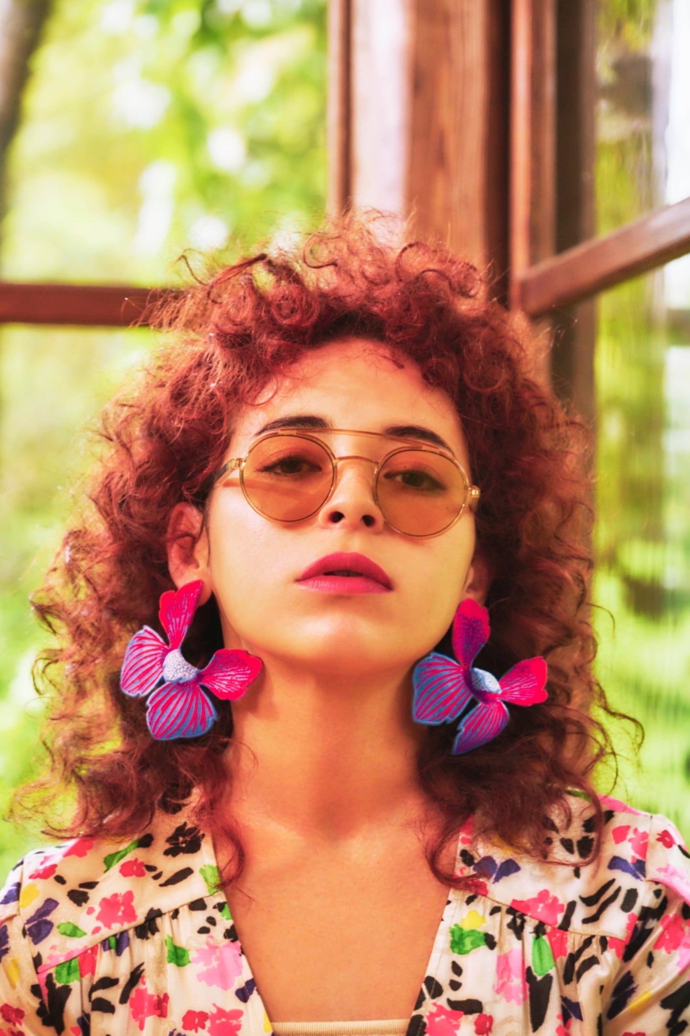 These earrings change shape thanks to the magnetic metal fittings. They are made from recycled polyester, which is environmentally friendly. The stylish design with a flower motif will add color to your everyday outfit.