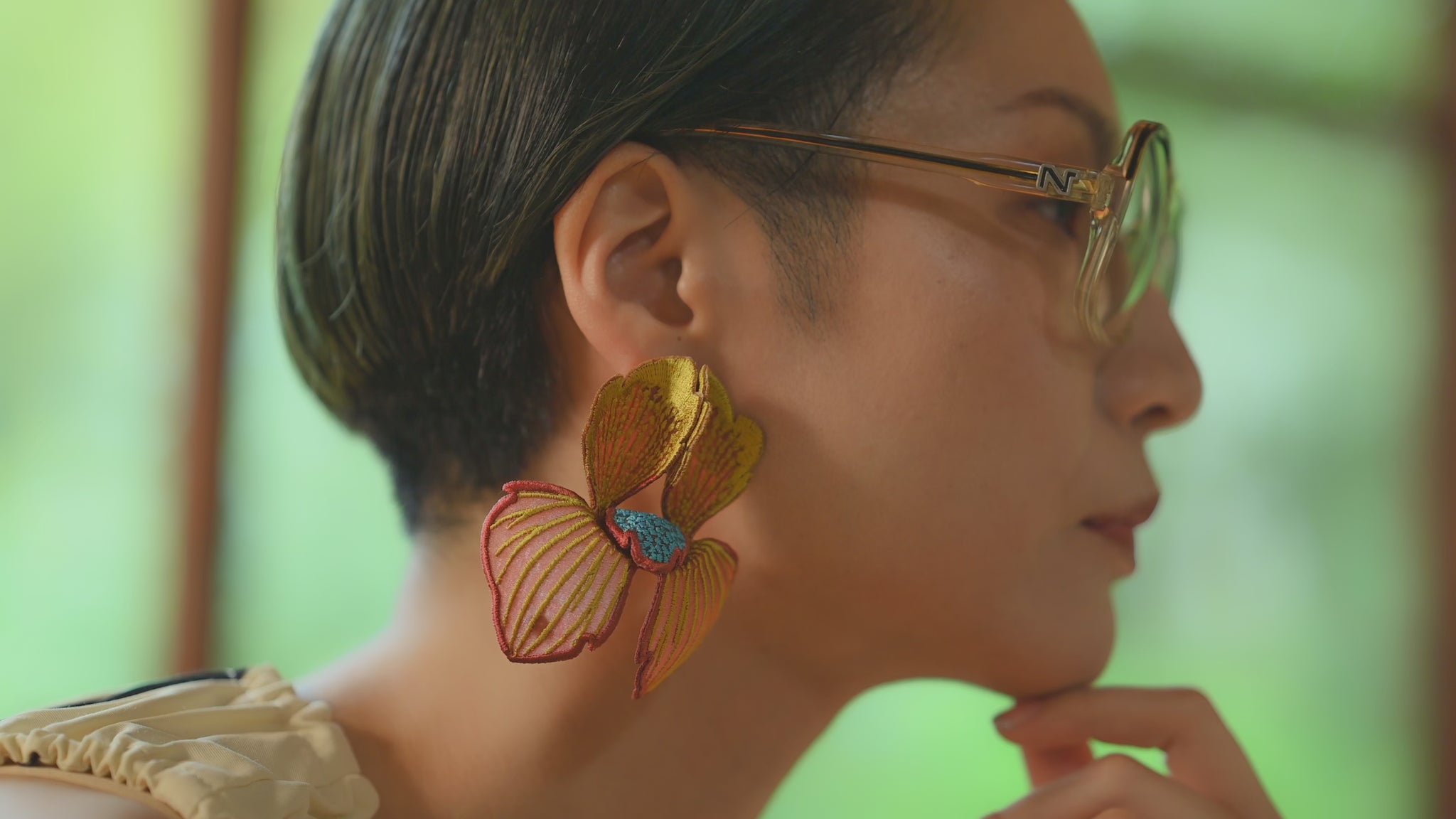 These earrings change shape thanks to the magnetic metal fittings. They are made from recycled polyester, which is environmentally friendly. The stylish design with a flower motif will add color to your everyday outfit.