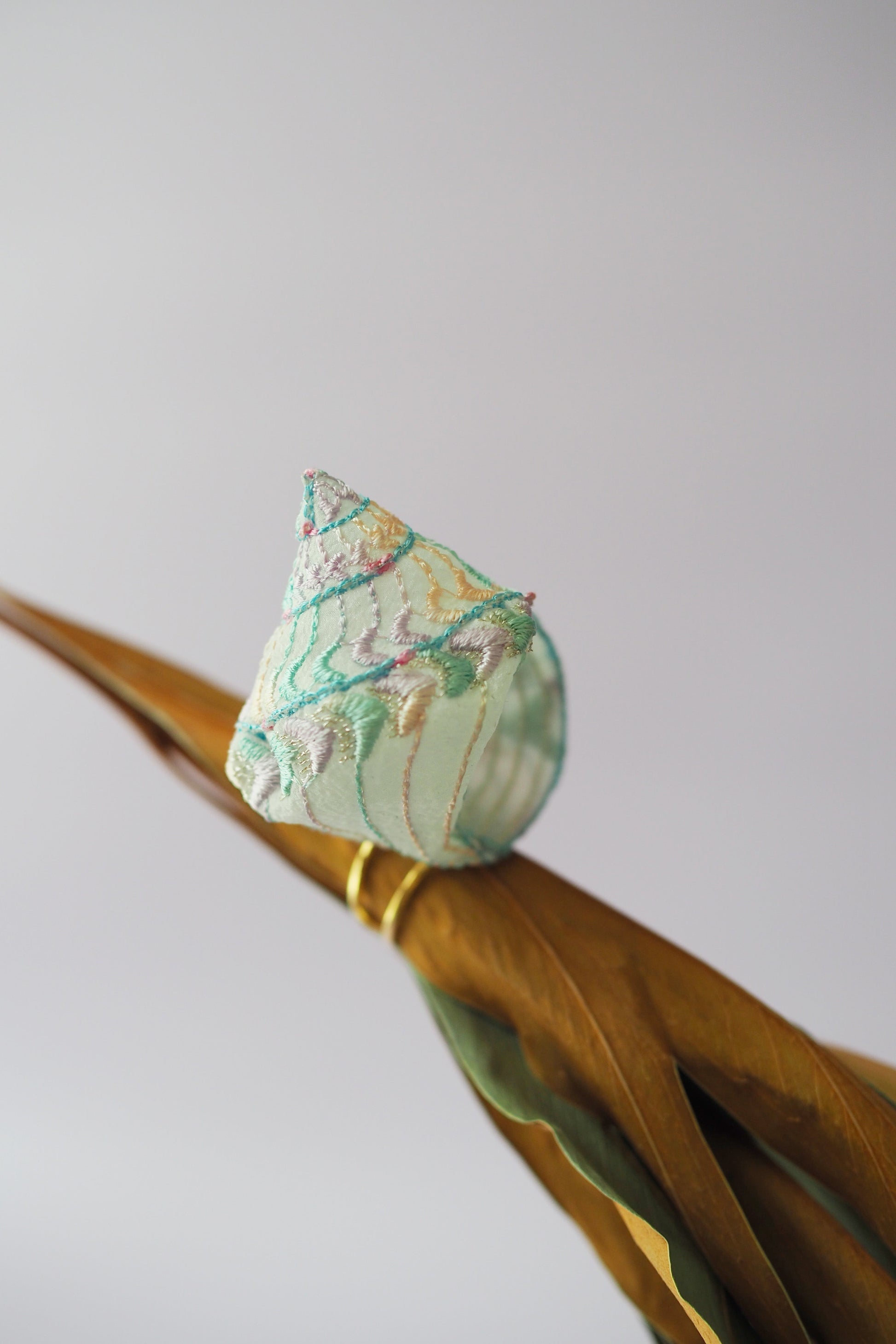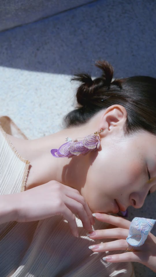 The main feature is the conch shell design, and the voluminous, lightweight, and textured fabric has been delicately embroidered.