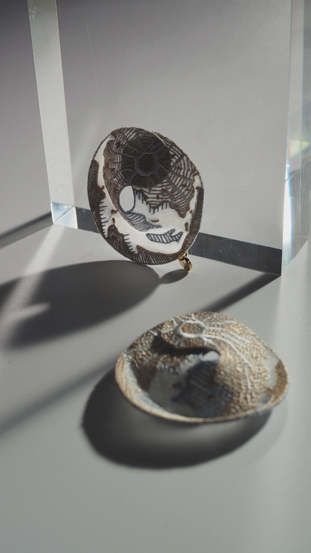 These earrings are inspired by the luminosity of the moon and express the mysterious brilliance of the universe.