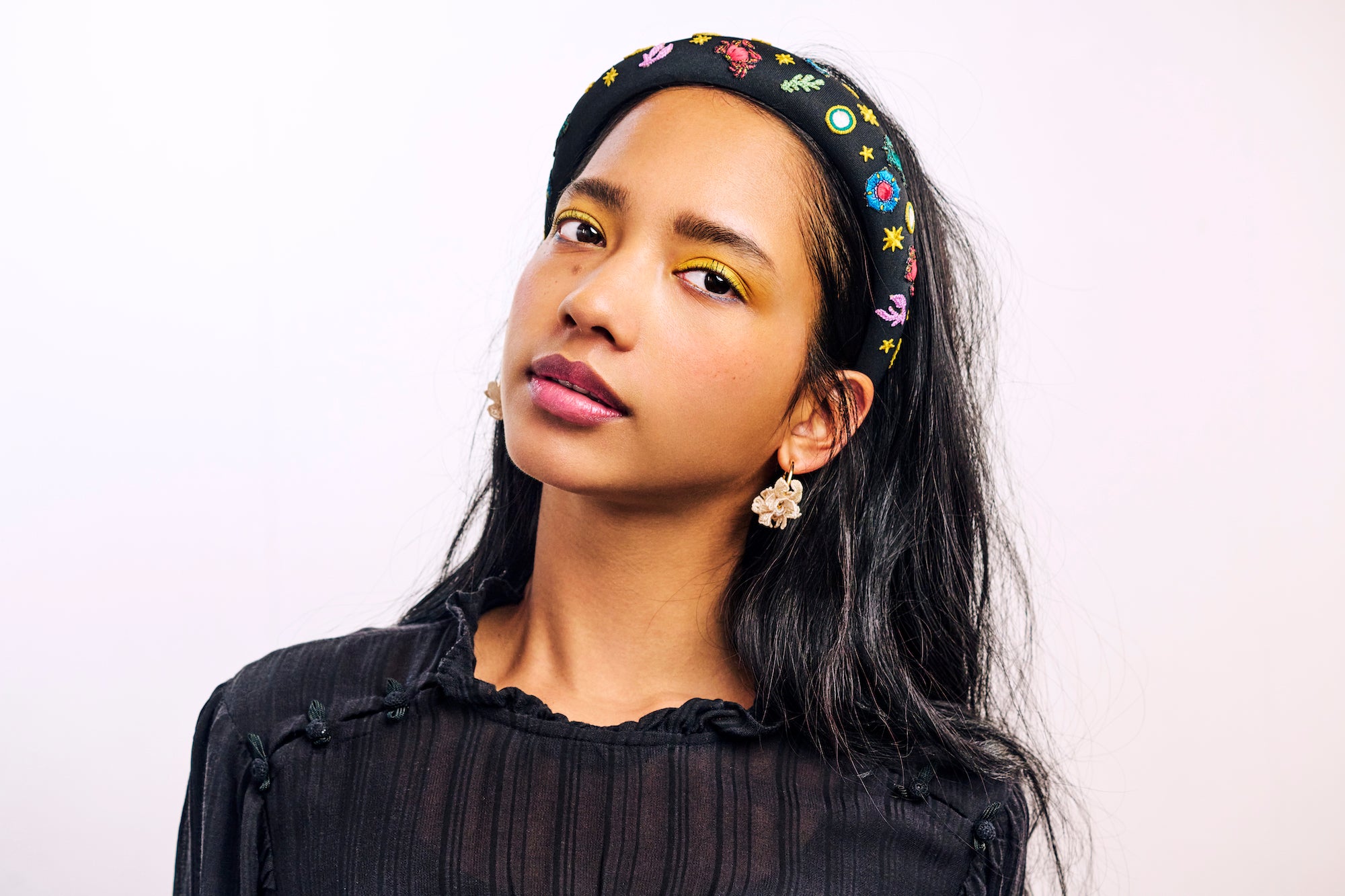 Embrace the breath of nature with these vibrant earrings, inspired by the organic undulations of waves and plants. Crafted with delicate embroidery on organdy material made from recycled PET bottles, each piece is meticulously cut and shaped with a curling iron. Introduce a touch of art to your everyday with this unique accessory.