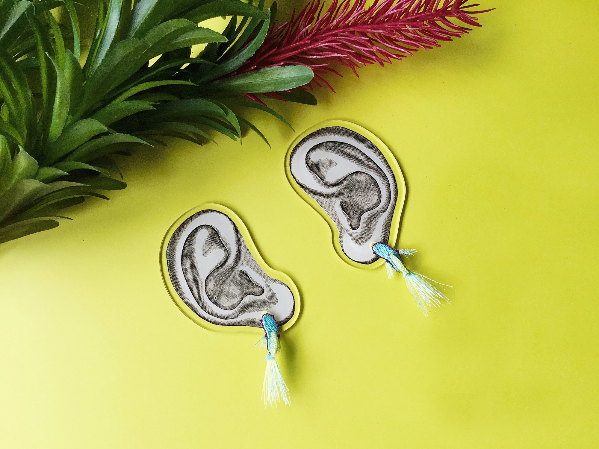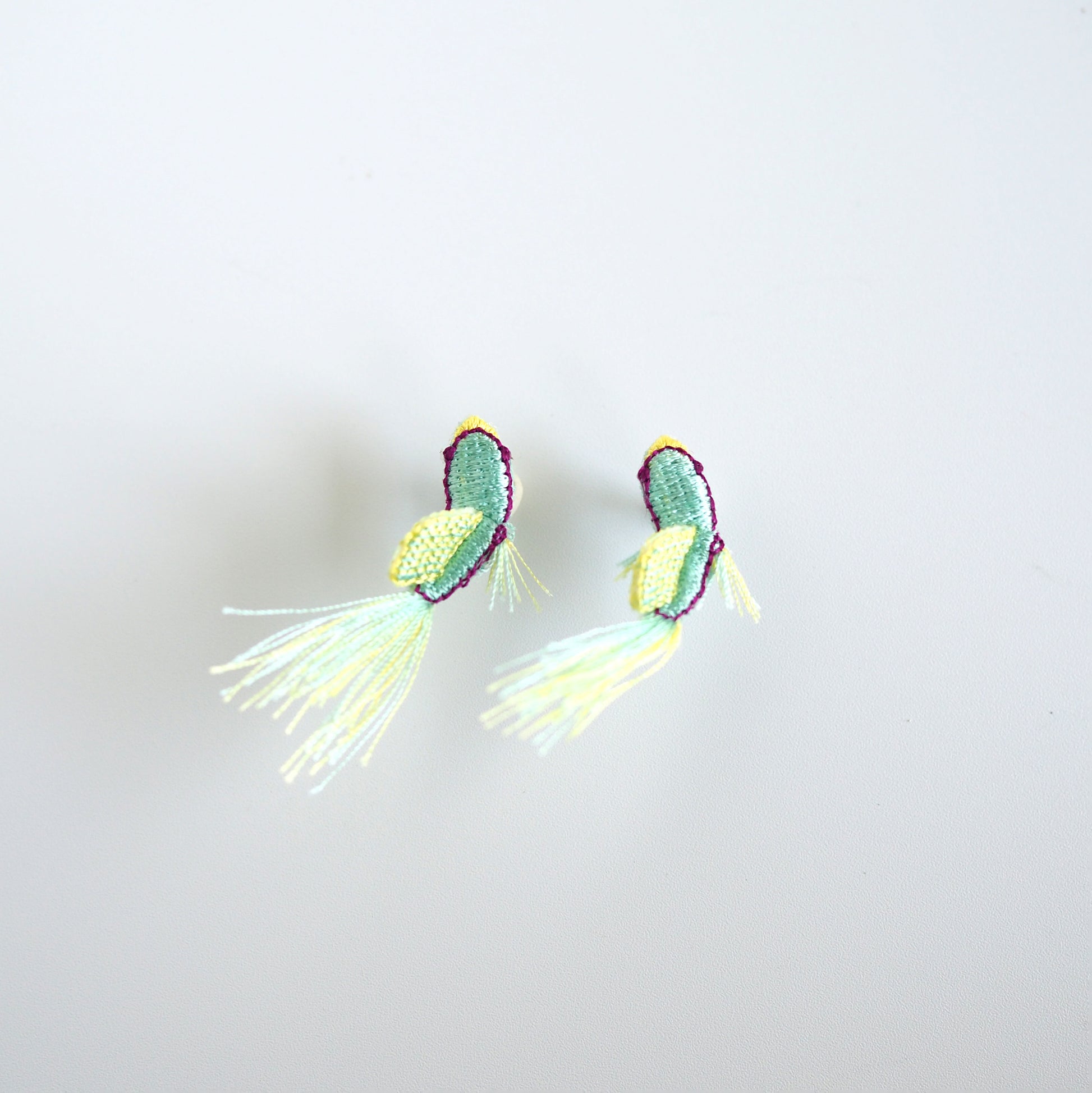 These non-pierced earrings are embroidered with the image of summery tropical fish, like fish swimming in your ears.