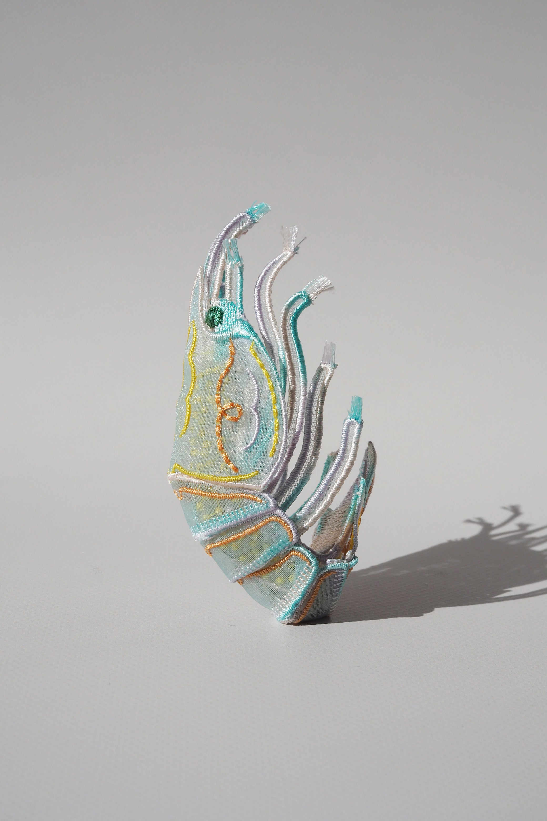 エビの細い足は布を用いることによって自然に生じる動きを利用して生き物らしさを表現した。