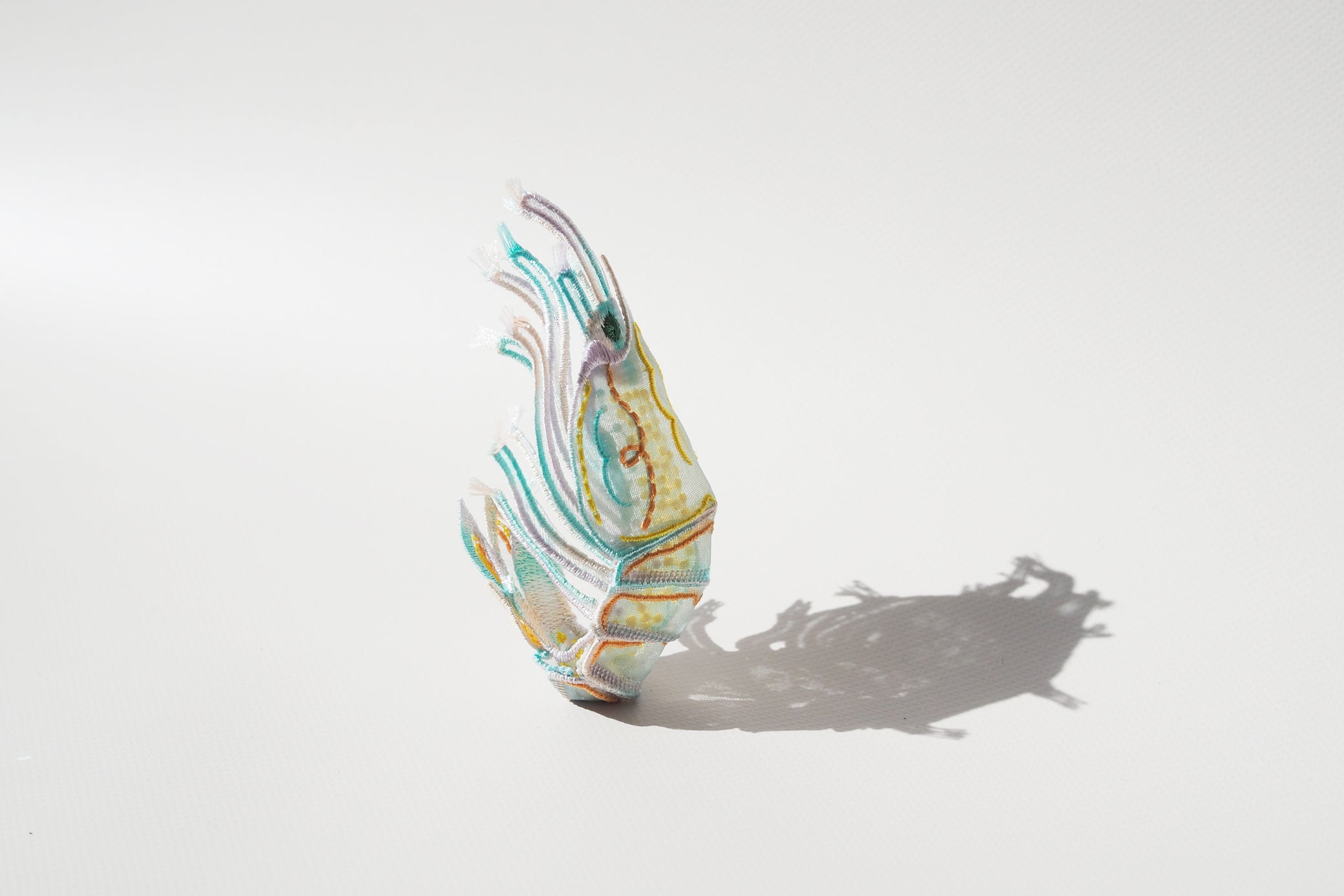 二つの重なったパーツが透明感を引き立てて、複雑かつ繊細な生き物の美しさを表現している。