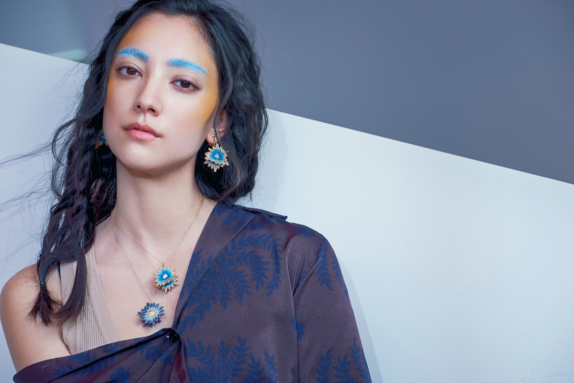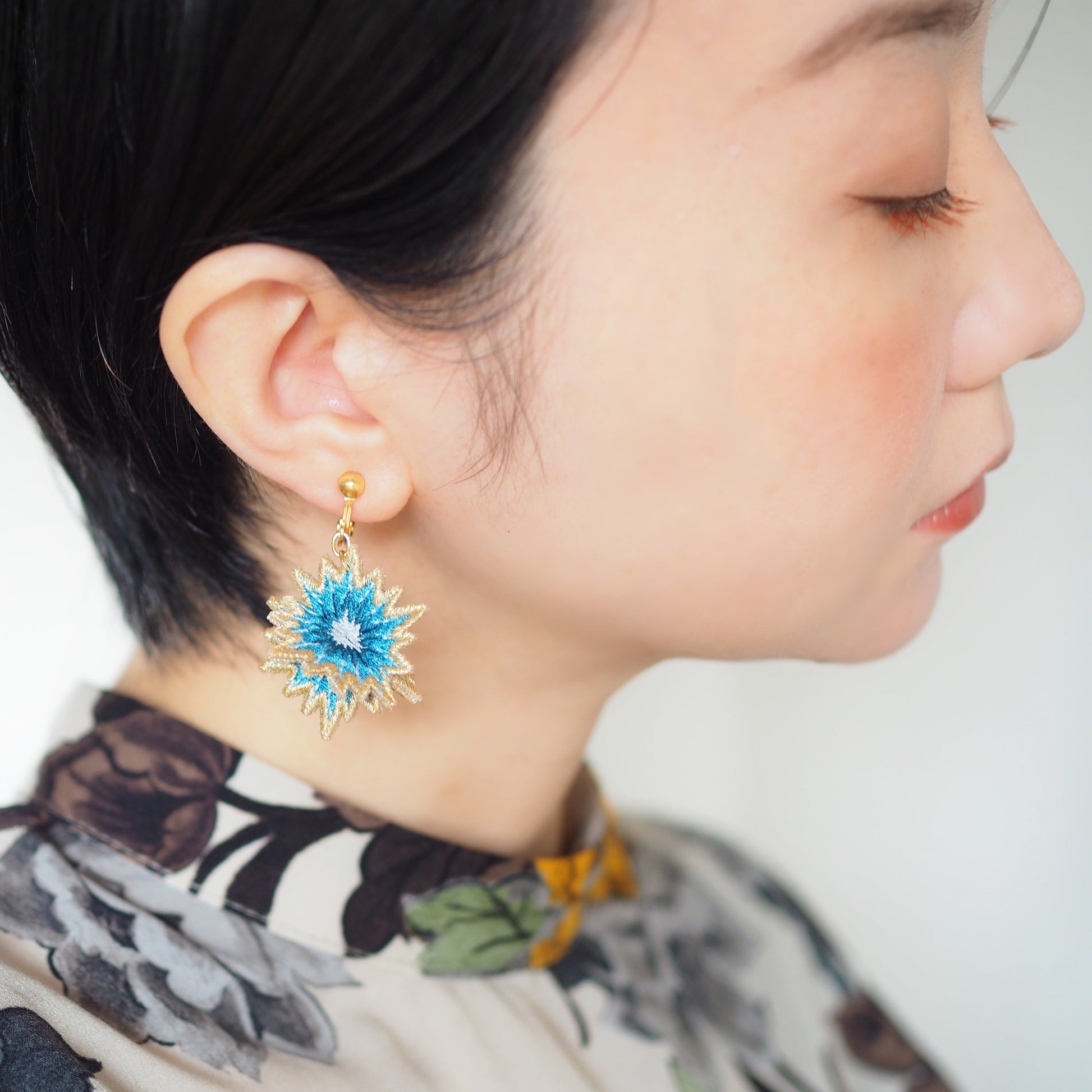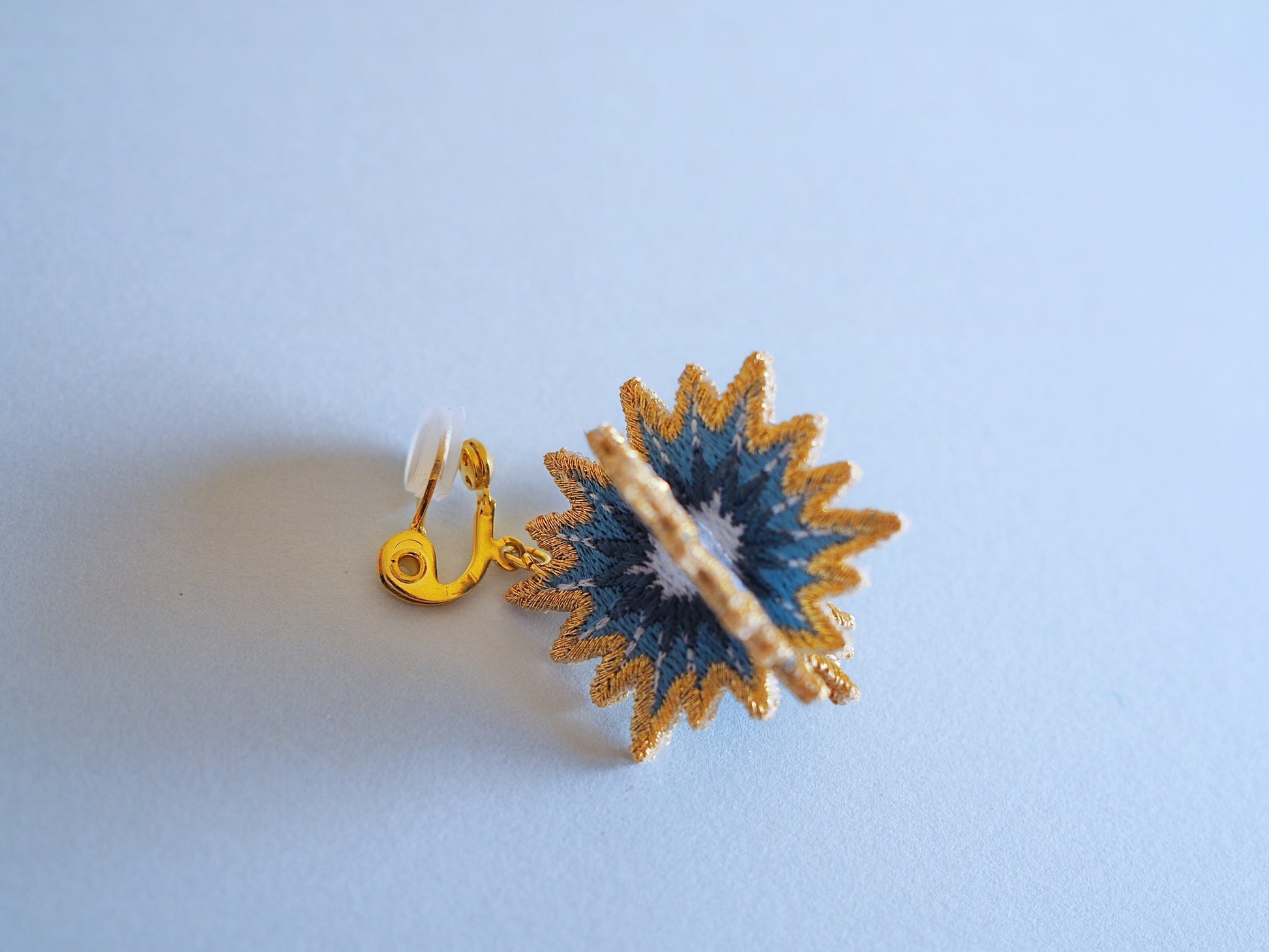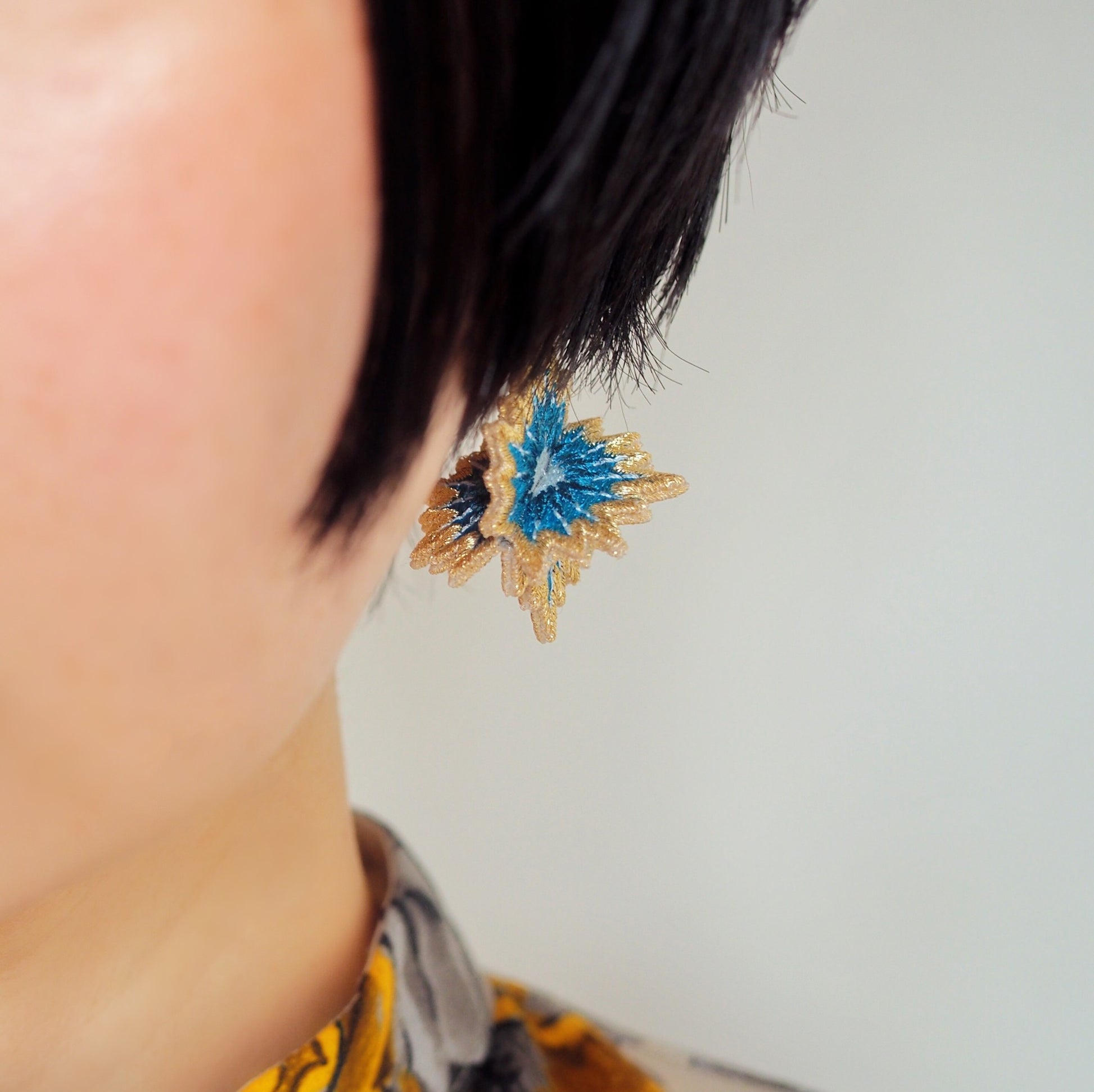 平面で刺繍したパーツを組み合わせて立体感を持たせています。