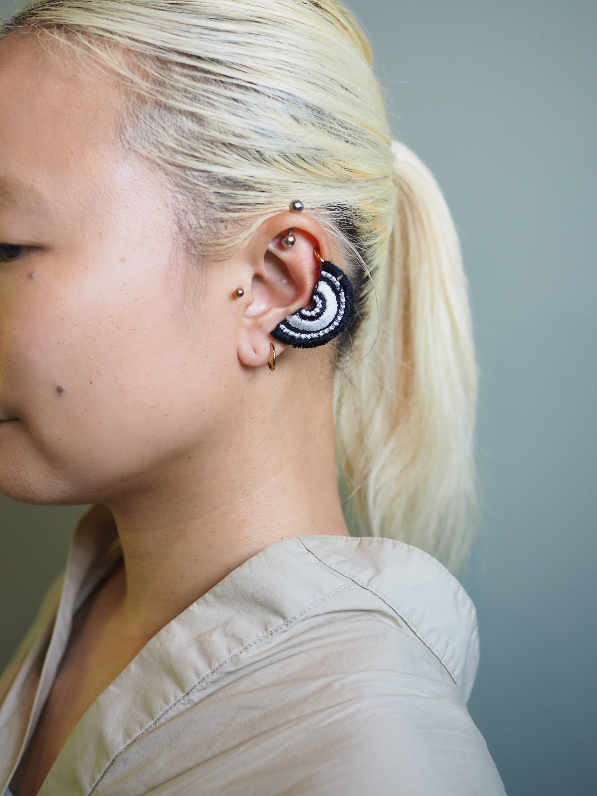 ヤークリップタイプはイヤーカフのように耳のサイドにつけたり、耳たぶに付けたり