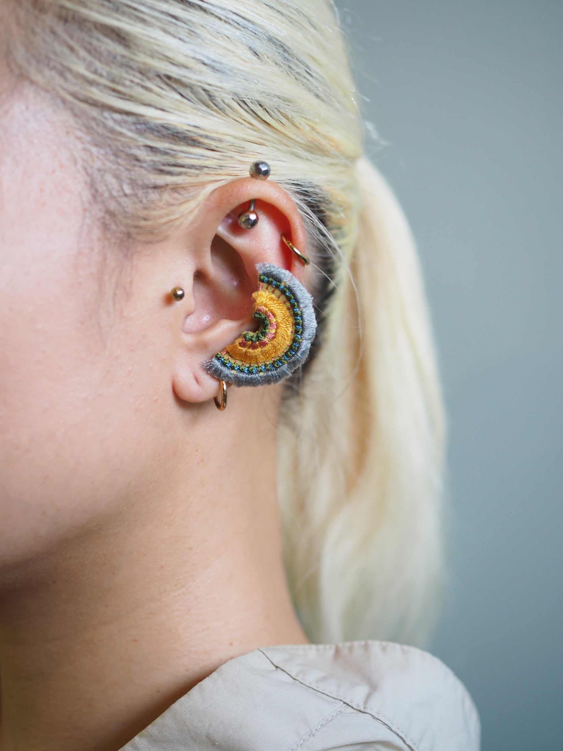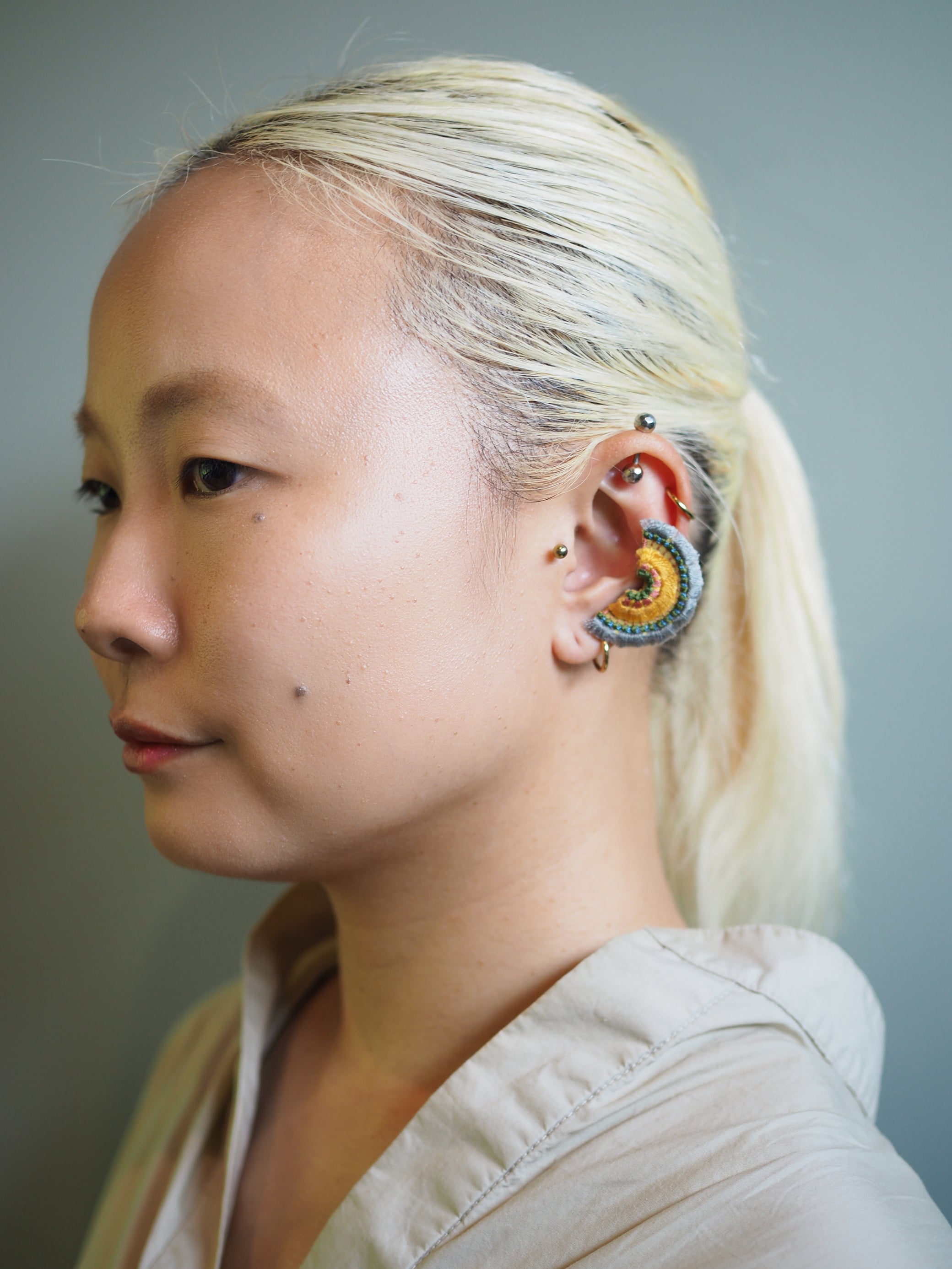 ヤークリップタイプはイヤーカフのように耳のサイドにつけたり、耳たぶに付けたり