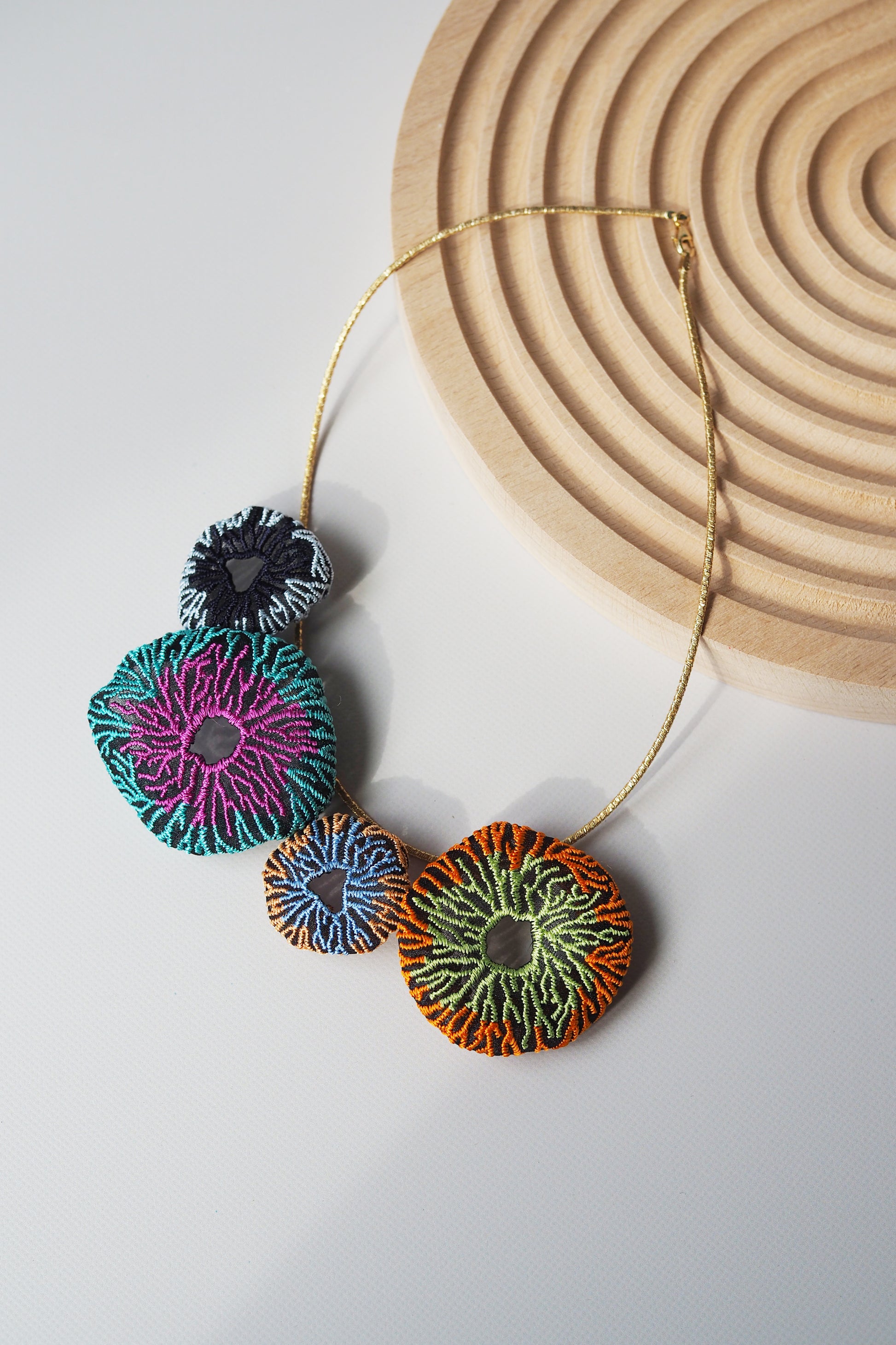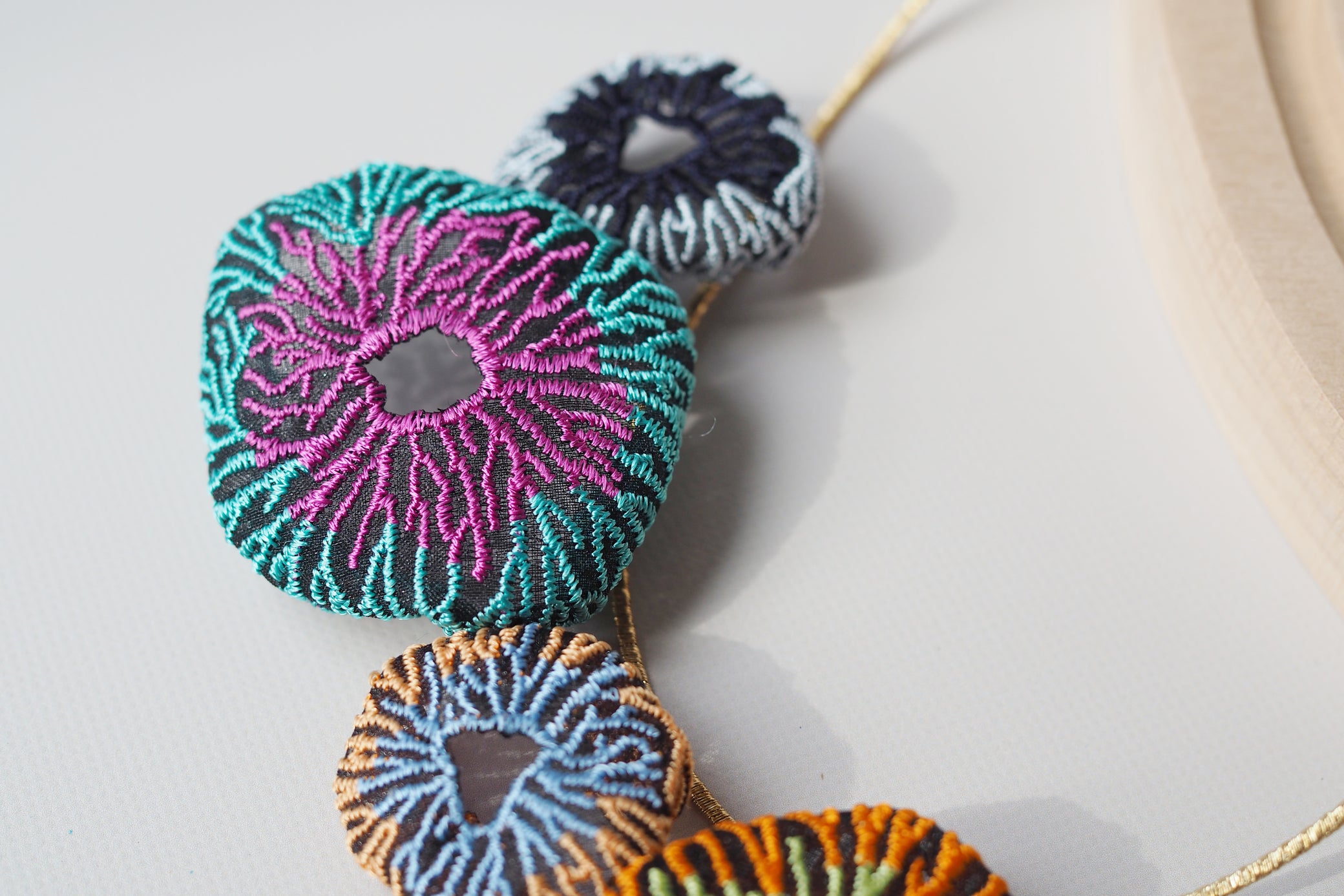 珊瑚や海月、泡など海のイメージからインスパイアされた作品。