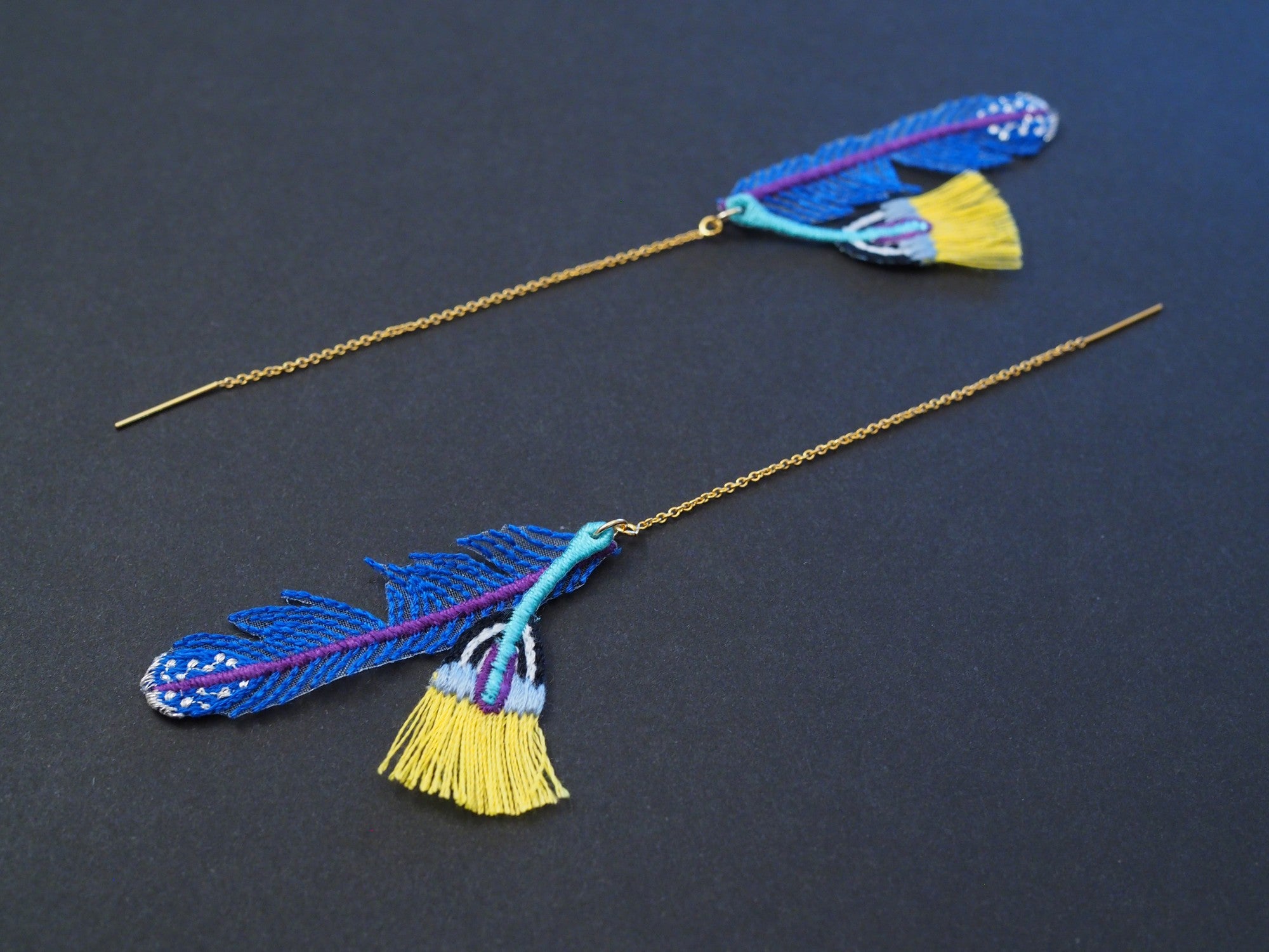 "鳥の羽”をモチーフに刺繍で製作した軽やかなピアスです。