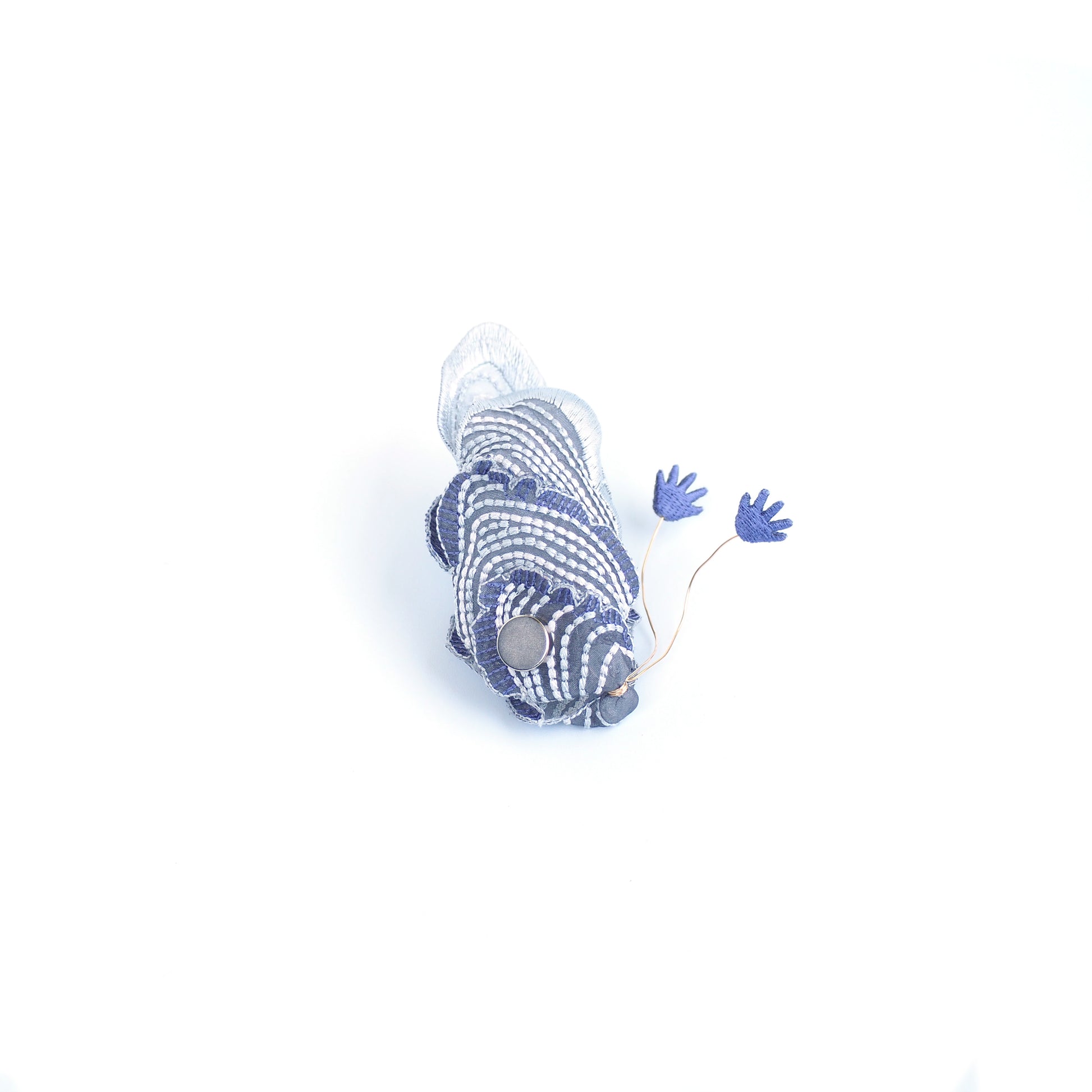 マグネットで止めるタイプのブローチなので、お洋服を傷める事なくご使用いただけます。またピッタリと固定される為、立体感のある造形をより引き立てます。
