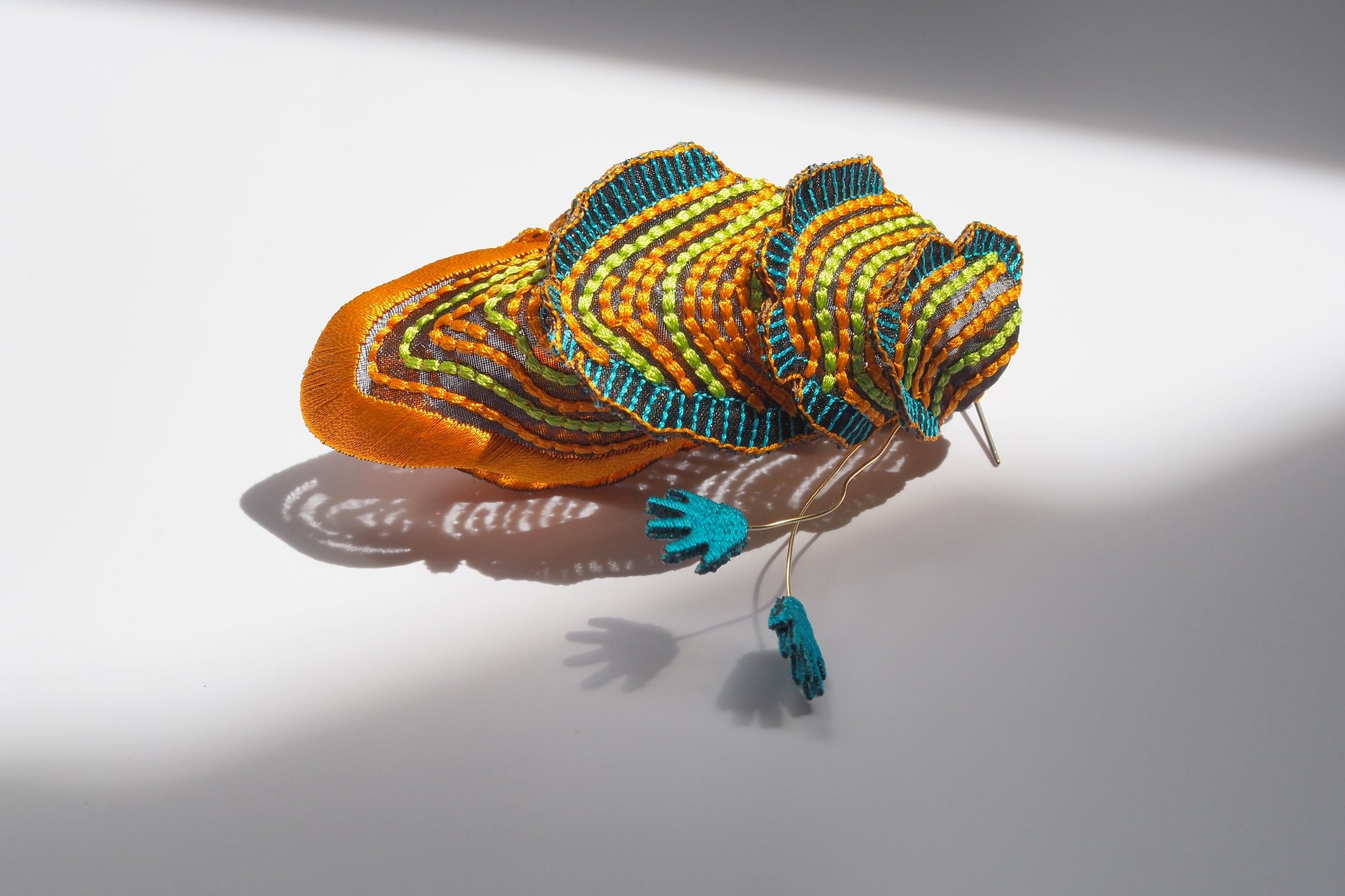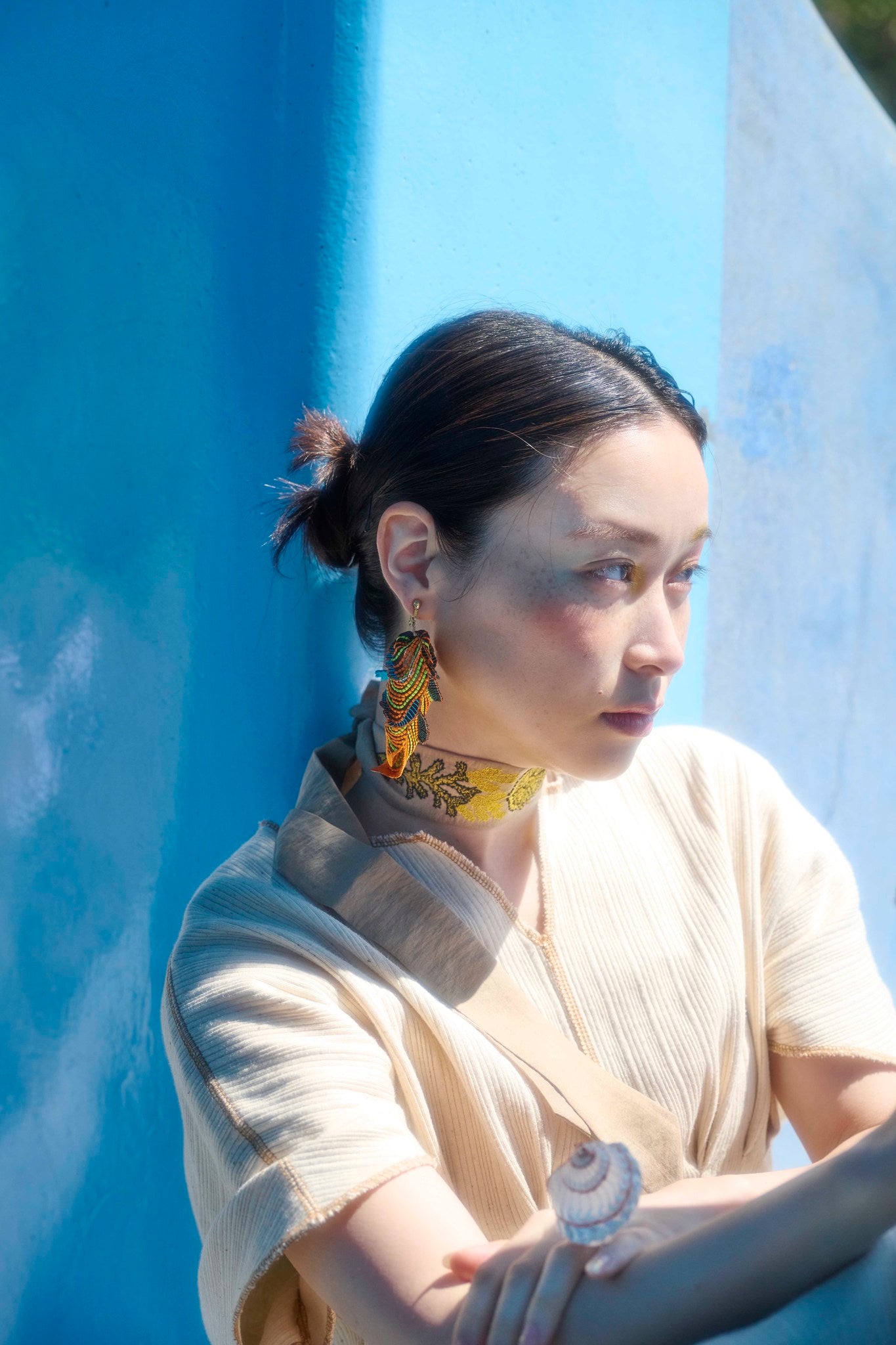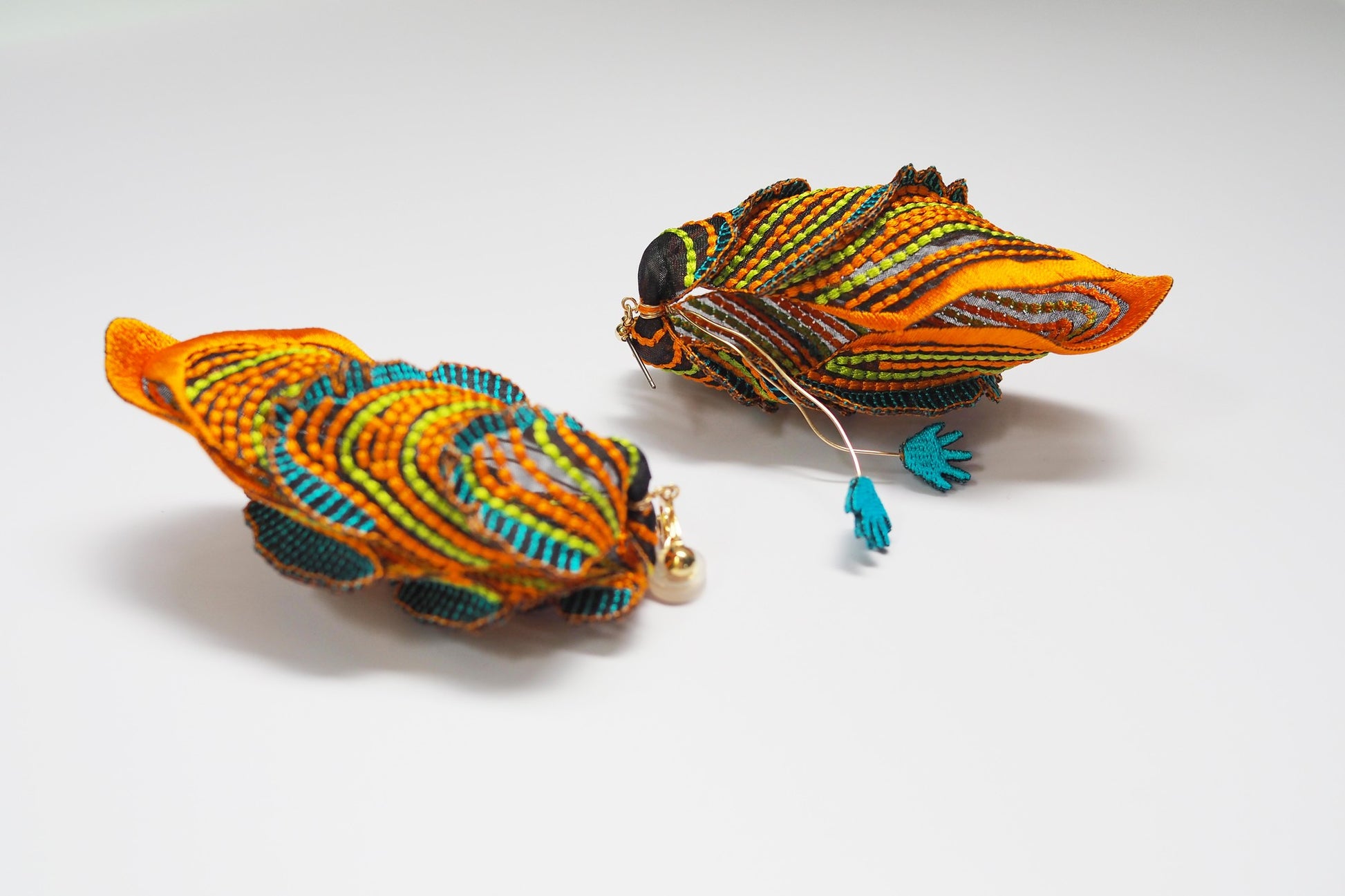 刺繍を施したオーガンジーの透け感と、丸みのあるフォルムをお楽しみいただけるジュエリーです。