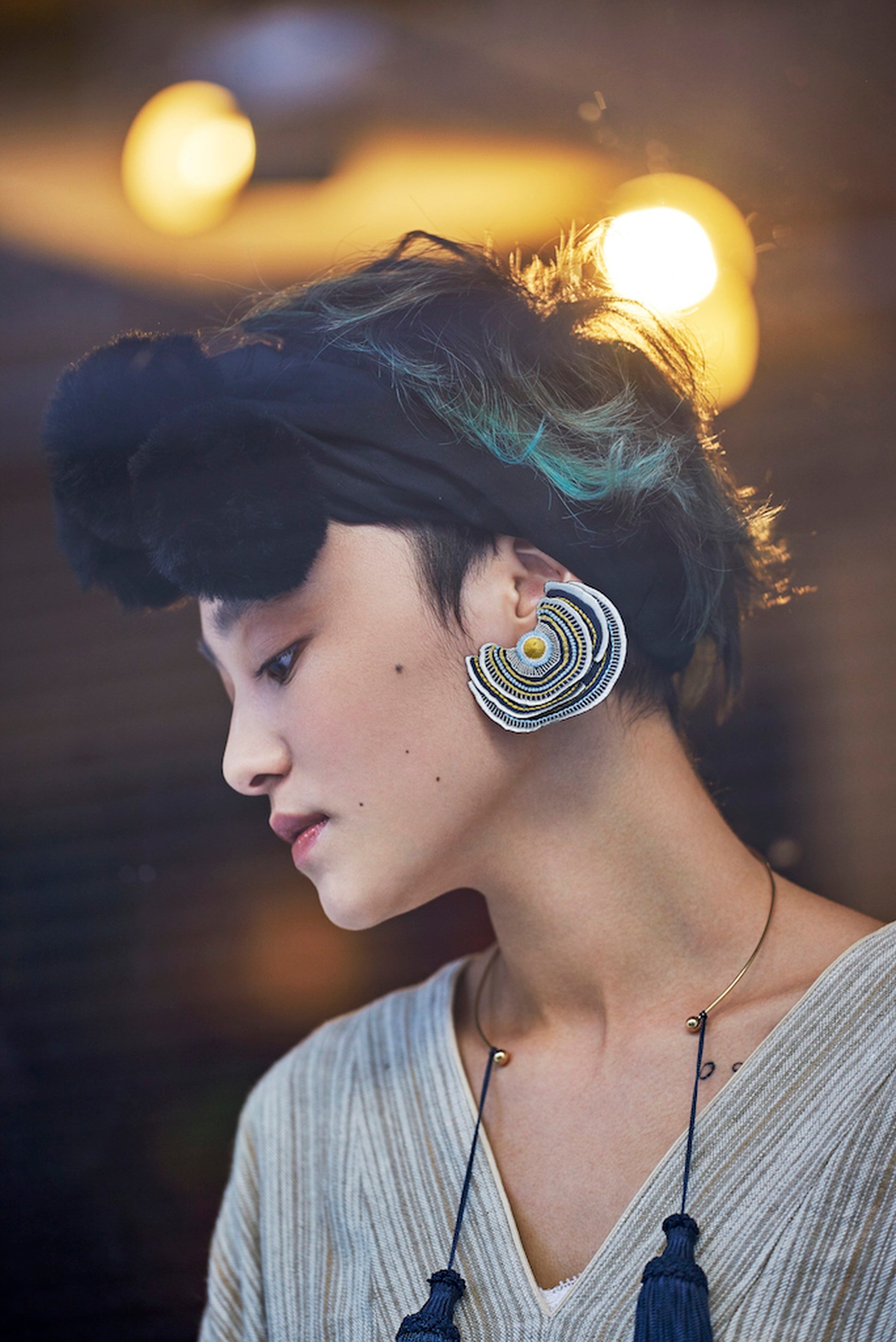 ハリ感のある生地に刺繍したパーツを重ねて立体感をもたせています。