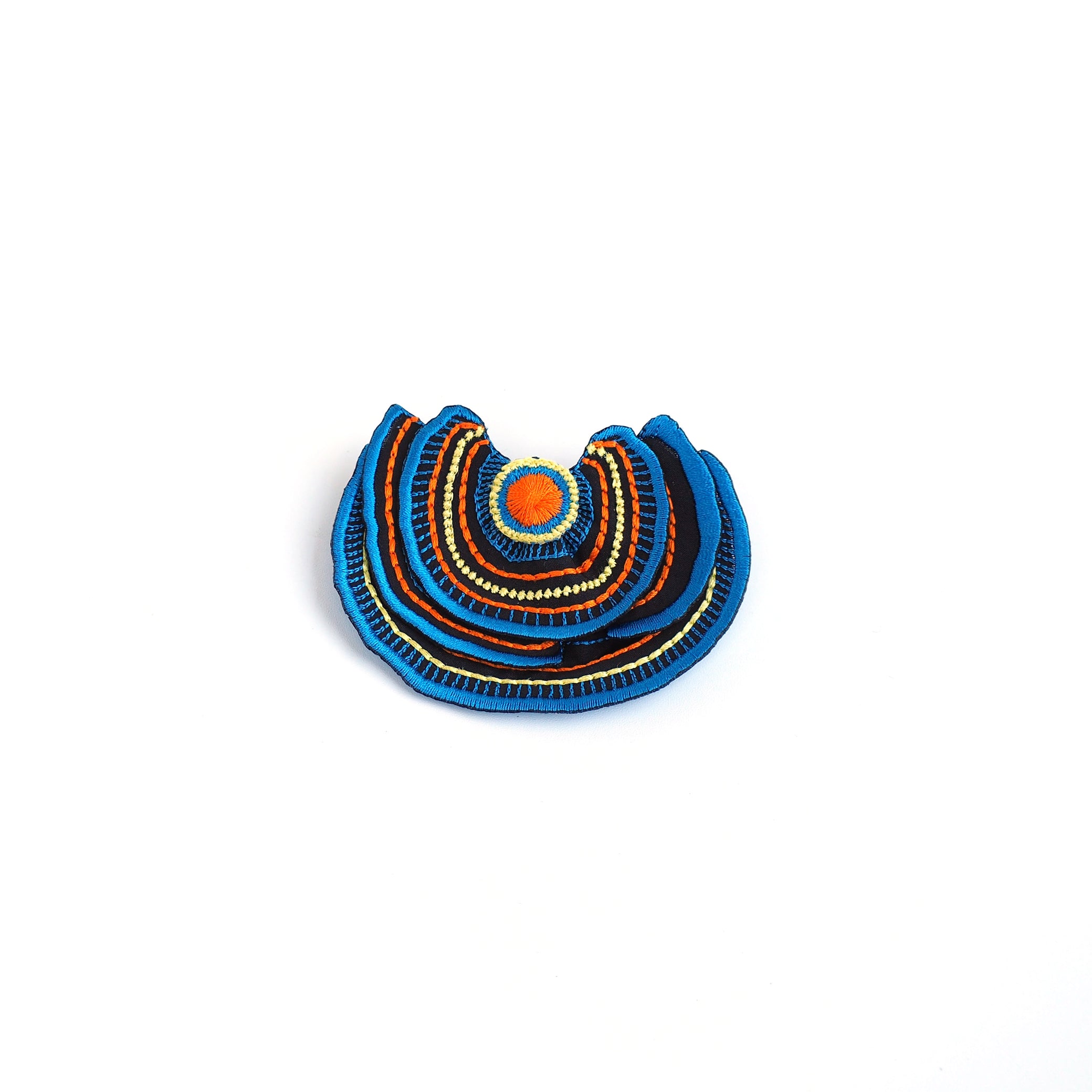 ハリ感のある生地に刺繍したパーツを重ねて立体感をもたせています。